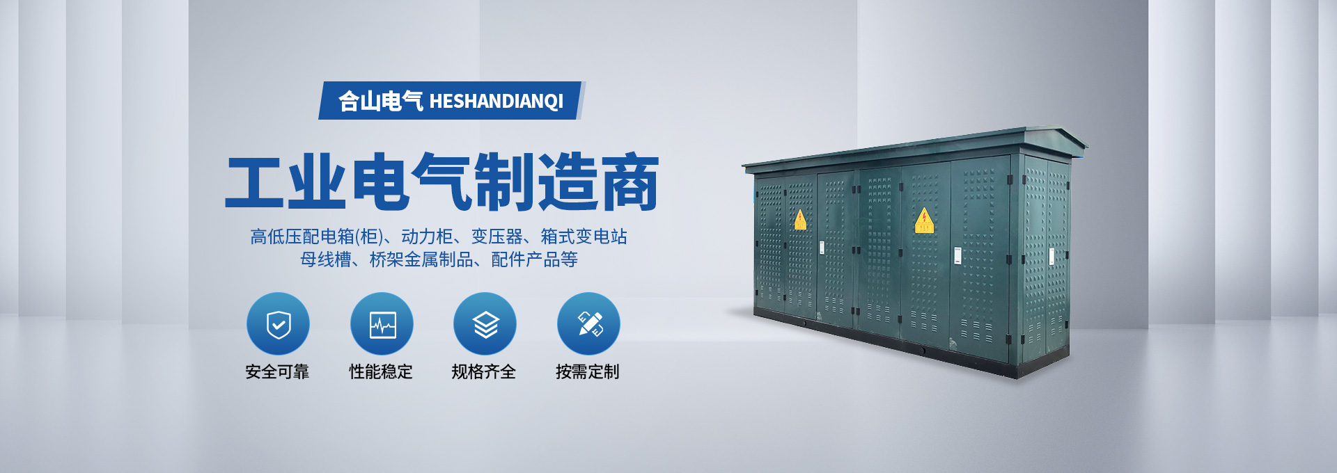 河南合山電氣有限公司地處安陽開發區,占地面積6500平方米,現有員工100余人,其中中技術管理人員10余人;是生產高低壓配電箱(柜)、動力柜的生產銷售 、電器設備產品及配件、變壓器、箱式變電站、母線槽、橋架金屬制品銷售。公司已順利通過ISO9001質量體系認證及國家強制性產品認證CCC證書。多年來公司以提高產品市場競爭力為目標,以滿足市場需要為已任。我公司生產的高低壓成套電器設備,遍布豫、魯、翼、晉各地,其中建筑成套電器在安陽主場的占有率超過50%。質量穩定,反應良好。多年來河南合山電氣有限公司始終堅持“質量保證,服務為上”的原則,勇于創新,勤于實踐終使企業達到了“產品質量優,售后服務好,樣式品種新”的和諧統一,深受廣大用戶的好評。展望未來,我們將不斷采用新技術,適時推出新產品,滿足廣大客戶日益高漲的應用和管理需求。秉承企業理念,將以企業信息化為己任,技術產品為生命,客戶滿意為目標,主動進